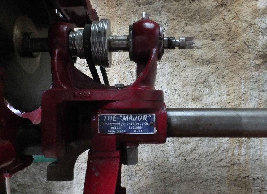 Gary bought the machine from a seller on 'Preloved' from Buckinghamshire in early 2013. It was a real struggle to bring the machine and cabinet down the angled stairway of his house from his first floor workroom. With the machine came a brown envelope containing photocopies of the operating manual. The envelope was addressed to Peter Child, FAO Mr.R.Child at the same address that the Childs still operate from. When Gary spoke to Roy Child to order a chuck for the machine he mentioned the envelope and Roy was pleasantly surprised. He said that the machine had probably been through their hands at some point but they were never agents for Coronet. The serial number on the machine is SER. NO. MA. 63.