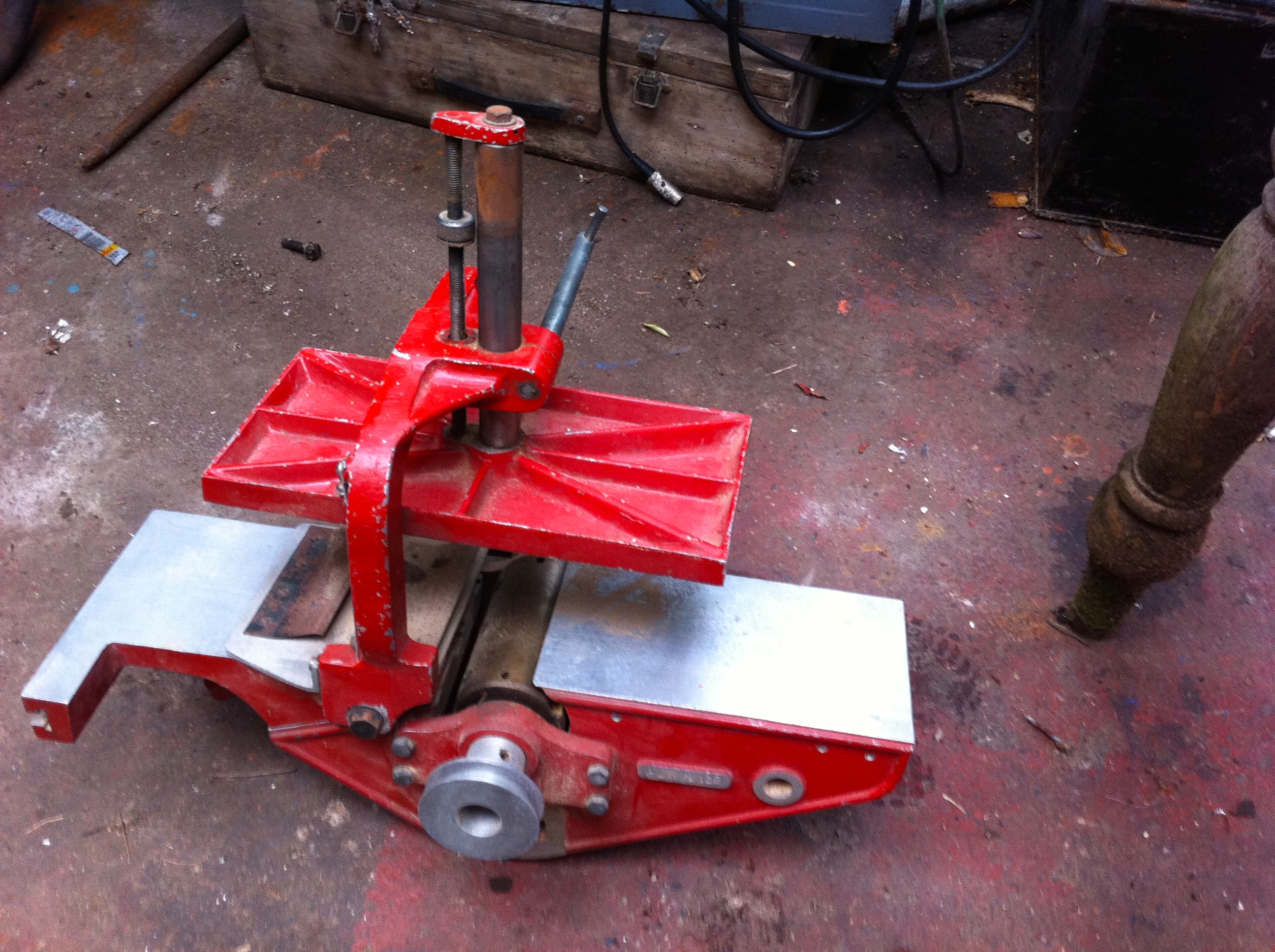 A close-up of the ingenious trolley device. Vital for moving this solid machinery around.