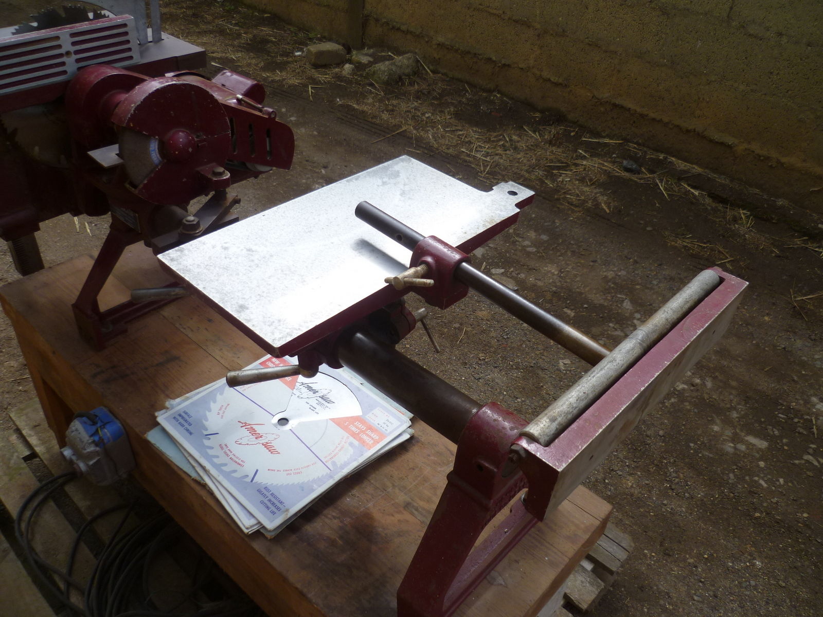 This one is owned and used by Richard Colbran. He took up woodwork in 1955 as a potentially useful hobby for future married life. Workshop space was limited but after creating a further basement room he finally had space for a machine. In 1967 he advertised in Exchange and Mart for a Coronet and got a single reply from a guy near Blackpool. It turned out to be a Majorette, with mortiser, planer, disc sander etc. He paid £70 for it at a time when the catalogue price was about £250 so a real bargain even then! He subsequently fitted the step-down gearbox and acquired the front tool-rest and as you can see the machine is still doing yeoman service. He has just dismantled and cleaned the rise-fall mechanism for the table saw which now works as new. He made a bench unit and mounted this on a set of wheels from an industrial sewing machine carriage which means that he can swing the machine round to suit the work in hand, then tuck it back out of the way after use.